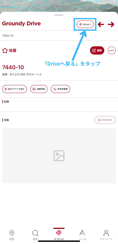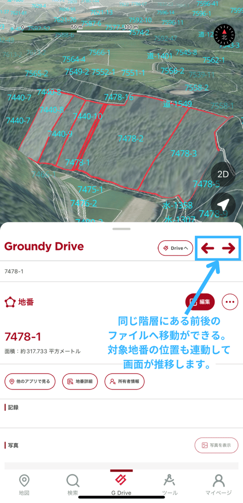 Groundy Driveに保存した地番ファイルやその他のファイル詳細情報がDriveからだけでなく、地図上の地番情報からでも確認しやすくなりました。