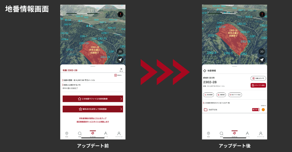 「地番詳細画面」アップデート比較