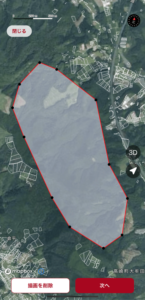 作成したエリアの面積が自動計算されるので工事計画の情報の一つとして役立ちます。